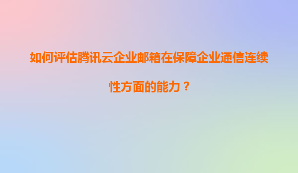 如何评估腾讯云企业邮箱在保障企业通信连续性方面的能力? 一、企业通信连续性的关键要素 企业通信连续性是指企业在任何情况下(包括网络中断、硬件故障、自然灾害等)都能保持邮件系统的稳定运行...