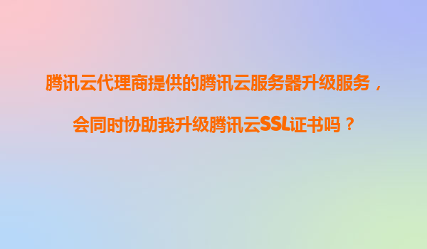 2025-11-19腾讯云代理商升级服务详解:服务器与SSL证书的协同升级优势 一、腾讯云代理商升级服务的核心价值 当您通过腾讯云代理商进行云服务器升级时,代理商通常会提供一站式技术支持,其中包括但...