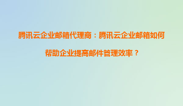 2025-10-06腾讯云企业邮箱代理商指南:如何高效实现多账号管理 一、腾讯云企业邮箱的核心优势 作为国内领先的企业级邮箱服务商,腾讯云企业邮箱凭借以下优势成为众多企业的首选: ...
