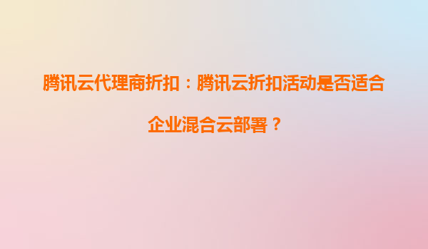 2025-10-05腾讯云代理商折扣:腾讯云折扣活动是否适合企业混合云部署? 引言 随着数字化转型的加速,越来越多的企业开始采用混合云架构来平衡成本、灵活性和安全性。腾讯云作为国内领先的云服务提供商,不仅提供强大...