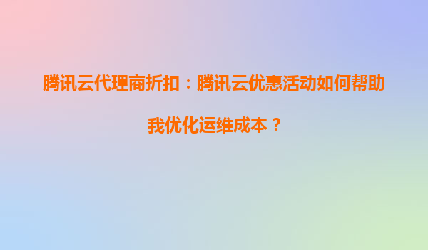 2025-10-05腾讯云代理商折扣:如何通过优惠活动优化运维成本 腾讯云代理商折扣的核心价值 腾讯云代理商折扣是用户降低云计算成本的重要途径。通过官方授权的代理商渠道,企业可以享受比官网直购更低的折扣价格,尤其...
