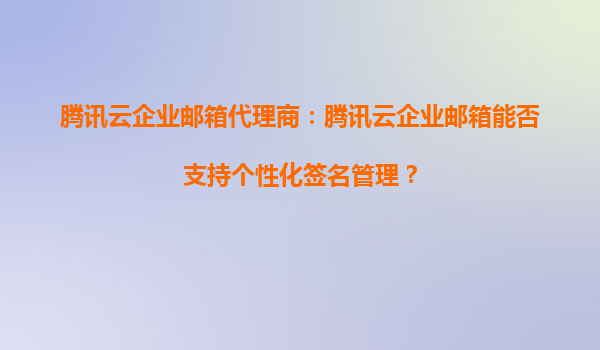 2025-10-05腾讯云企业邮箱代理商:腾讯云企业邮箱能否支持个性化签名管理? 在当今数字化办公环境中,企业邮箱不仅是沟通工具,更是企业形象的重要载体。作为腾讯云企业邮箱代理商,我们经常被客户问到一个问题:腾讯云企...