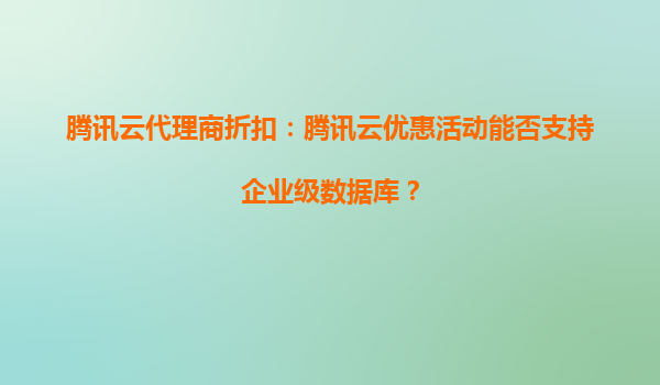 2025-10-04腾讯云代理商折扣:腾讯云优惠活动能否支持企业级数据库? 引言 随着数字化转型的加速,企业级数据库的需求日益增长。腾讯云作为国内领先的云计算服务提供商,...