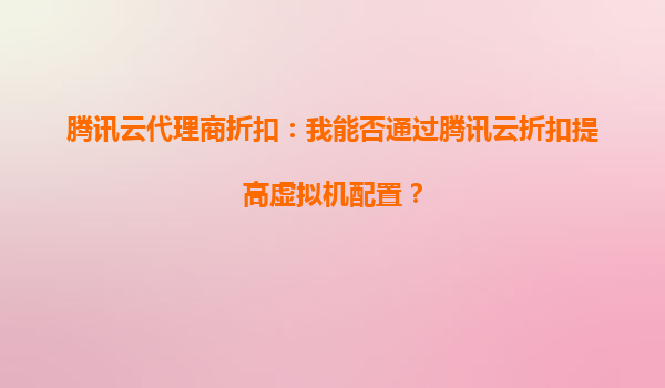 2025-10-04腾讯云代理商折扣:我能否通过腾讯云折扣提高虚拟机配置? 一、腾讯云代理商折扣的核心优势 腾讯云作为国内领先的云计算服务商,通过代理商体系为用户提供灵活的价格方案。代理商折扣通常涵盖新购、续费、...