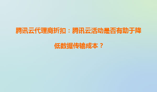 腾讯云代理商折扣:腾讯云活动是否有助于降低数据传输成本? 引言 在数字化转型的浪潮中,云计算已成为企业IT基础设施的核心组成部分。数据传输成本作为作为云服务使用中的一项重要支出...