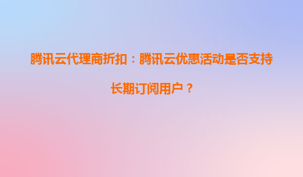 2025-10-04腾讯云代理商折扣:长期订阅用户的专属福利 腾讯云代理商折扣的灵活性 腾讯云作为国内领先的云计算服务提供商,不仅提供丰富的云产品,还通过代理商体系为用户带来更多优惠。对于...