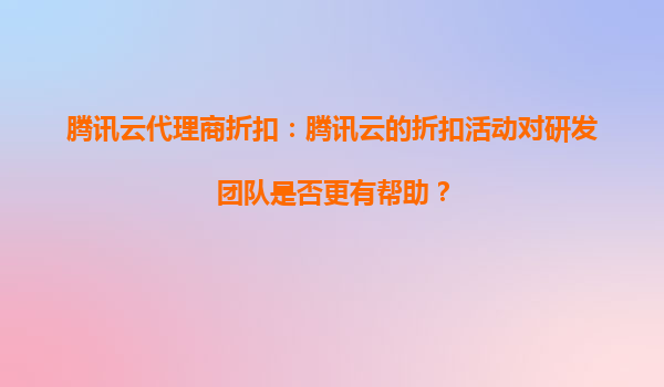 2025-10-03腾讯云代理商折扣:腾讯云的折扣活动对研发团队是否更有帮助? 引言 在云计算市场竞争日益激烈的今天,腾讯云凭借其强大的技术实力和丰富的产品线,成为众多企...