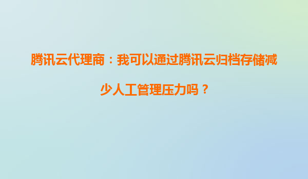 2025-10-02腾讯云代理商:如何通过归档存储减少人工管理压力? GrasptheessenceofcloudstoragesolutionswithTencentCloudArchiveStoragetoeaseyourmanualmanagementburdens.idoafraidof...