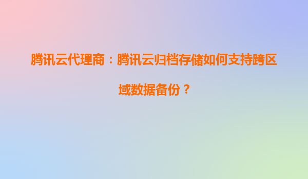 2025-10-01腾讯云代理商:腾讯云归档存储如何支持跨区域数据备份? 一、腾讯云归档存储的核心优势 腾讯云归档存储(CloudArchiveStorage,CAS)是腾讯云提供的低成本、高可靠的数据长期存储服务,适用于合...