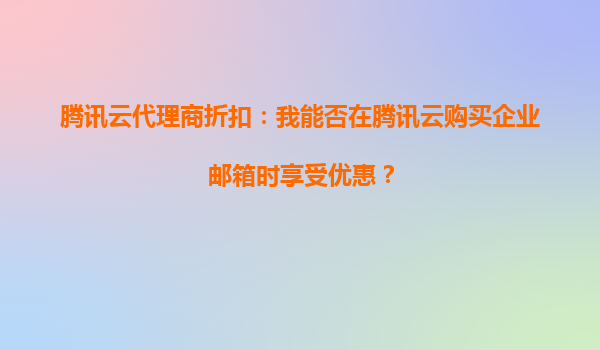 2025-09-25腾讯云代理商折扣:企业邮箱购买优惠指南 腾讯云代理商折扣政策解析 通过腾讯云官方认证的代理商渠道购买企业邮箱服务,用户可享受专属折扣优惠。代理商通常能提供比官网标价更低的协议价格,尤其适合中长期使...