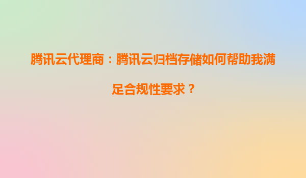 2025-09-25腾讯云代理商:腾讯云归档存储如何帮助企业满足合规性要求? 引言 在数字化时代,数据已成为企业的核心资产之一。随着数据量的爆炸式增长,如何安全、合规地存...