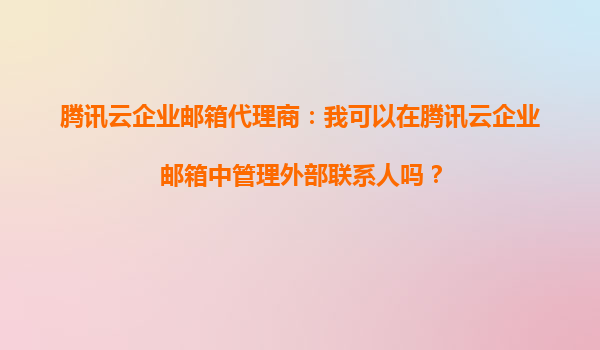 2025-09-22腾讯云企业邮箱代理商:如何在腾讯云企业邮箱中管理外部联系人? 什么是腾讯云企业邮箱? 腾讯云企业邮箱是一款专为企业用户打造的高效邮件管理服务,支持多域名、超大容量存储以及安全稳定的邮件收发功能...