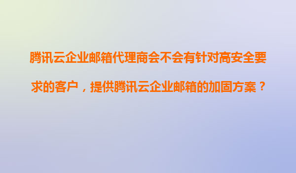 2025-11-23腾讯云企业邮箱代理商:为高安全需求客户提供专业加固方案 在数字化时代,企业邮箱作为核心通信工具,其安全性直接关系到企业数据资产和商业机密的安全。针对政府机构、金融机构、大型企业等高安全要求客户,腾...