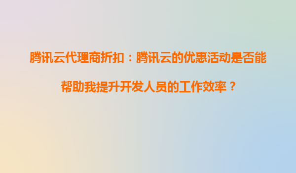 2025-09-19腾讯云代理商折扣:腾讯云的优惠活动是否能帮助我提升开发人员的工作效率? 引言 在当今数字化飞速发展的时代,云计算已成为企业技术架构的核心组成部分。作为国内领先的云计算服务提供商...