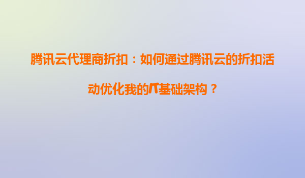 2025-09-19腾讯云代理商折扣:如何通过腾讯云的折扣活动优化我的IT基础架构? 一、腾讯云的核心优势 腾讯云作为国内领先的云计算服务提供商,凭借其强大的技术实力和丰富的产品生态,为企业提供了稳定、高效且灵...