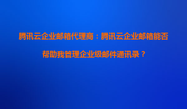 2025-09-18腾讯云企业邮箱代理商:腾讯云企业邮箱能否帮助管理企业级邮件通讯录? 引言 在现代企业中,高效的邮件通讯系统是日常运营不可或缺的一部分。尤其是企业级邮件...