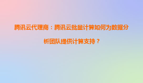 腾讯云代理商:腾讯云批量计算如何为数据分析团队提供计算支持? 一、引言:数据分析团队面临的挑战与机遇 随着大数据时代的到来,数据分析团队在处理海量数据时面临计算资源不足...