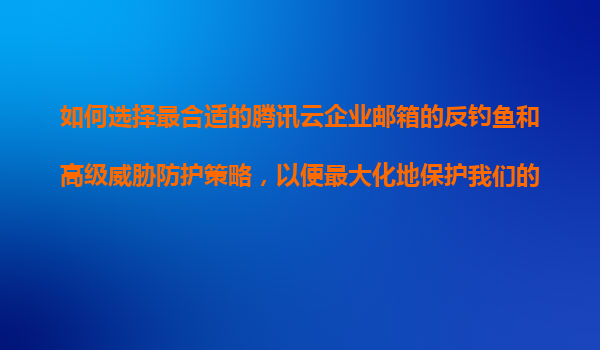 2025-11-13如何选择最合适的腾讯云企业邮箱反钓鱼和高级威胁防护策略 一、核心数据安全防护的挑战与需求 在数字化办公时代,企业邮箱已成为商业沟通的核心载体,但同时也是黑客攻击的主要目标。据统计,91%的网络...