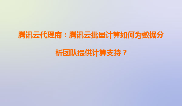 腾讯云代理商:腾讯云批量计算如何为数据分析团队提供计算支持? 一、引言:数据分析团队面临的挑战与机遇 随着大数据时代的到来,数据分析团队在处理海量数据时面临计算资源不足...
