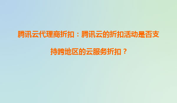 2025-09-17腾讯云代理商折扣:跨地区云服务折扣解析与腾讯云优势 一、腾讯云代理商折扣活动概述 腾讯云作为国内领先的云计算服务提供商,通过代理商体系为客户提供灵活的折扣方案。代理商折扣通常覆盖计算、存储、数...