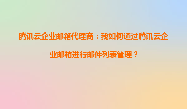 2025-09-17腾讯云企业邮箱代理:如何通过腾讯云企业邮箱高效管理邮件列表? 一、腾讯云企业邮箱的独特优势 腾讯云企业邮箱是腾讯基于多年技术积累推出的企业级邮箱服务,其核心优势包括: 稳定...