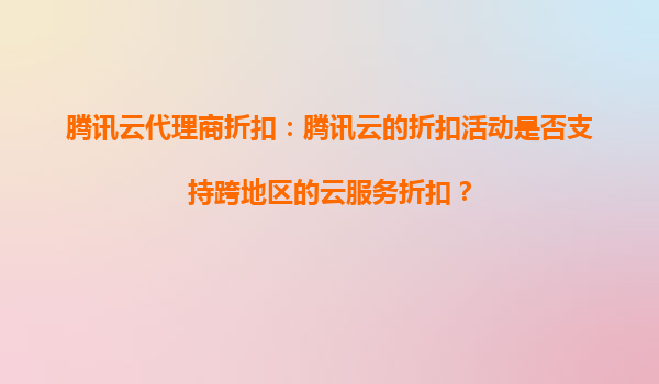 2025-09-17腾讯云代理商折扣:跨地区云服务折扣解析与腾讯云优势 一、腾讯云代理商折扣活动概述 腾讯云作为国内领先的云计算服务提供商,通过代理商体系为客户提供灵活的折扣方案。代理商折扣通常覆盖计算、存储、数...