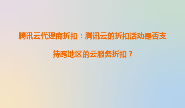 2025-09-17腾讯云代理商折扣:跨地区云服务折扣解析与腾讯云优势 一、腾讯云代理商折扣活动概述 腾讯云作为国内领先的云计算服务提供商,通过代理商体系为客户提供灵活的折扣方案。代理商折扣通常覆盖计算、存储、数...
