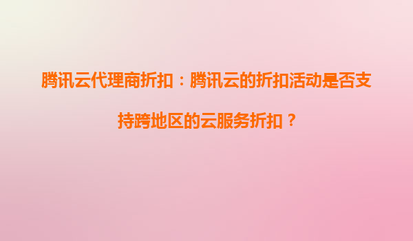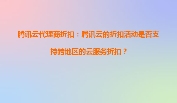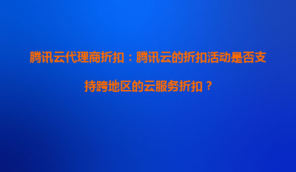 腾讯云代理商折扣:跨地区云服务折扣解析与腾讯云优势 一、腾讯云代理商折扣活动概述 腾讯云作为国内领先的云计算服务提供商,通过代理商体系为客户提供灵活的折扣方案。代理商折扣通常覆盖计算、存储、数...