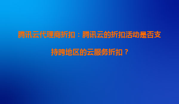 2025-09-17腾讯云代理商折扣:跨地区云服务折扣解析与腾讯云优势 一、腾讯云代理商折扣活动概述 腾讯云作为国内领先的云计算服务提供商,通过代理商体系为客户提供灵活的折扣方案。代理商折扣通常覆盖计算、存储、数...