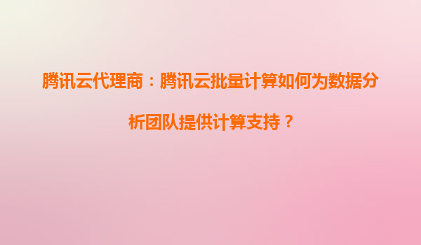 2025-09-17腾讯云代理商:腾讯云批量计算如何为数据分析团队提供计算支持? 一、引言:数据分析团队面临的挑战与机遇 随着大数据时代的到来,数据分析团队在处理海量数据时面临计算资源不足...