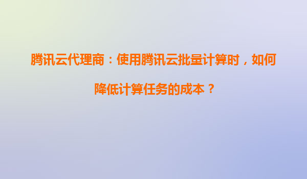 2025-09-16腾讯云代理商指南:如何有效降低腾讯云批量计算任务成本 一、理解腾讯云批量计算的核心优势 腾讯云批量计算(BatchCompute)是一种高性能计算服务,支持海量作业并行处理,适用于基因测...
