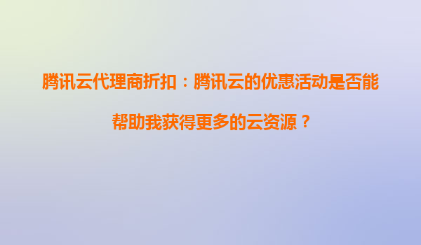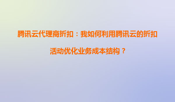 腾讯云代理商折扣:腾讯云的折扣活动能支持哪些类型的云产品? 一、腾讯云代理商折扣概述 腾讯云作为国内领先的云计算服务提供商,为企业和开发者提供了丰富的云产品与服务。为了进一步降低用户的...