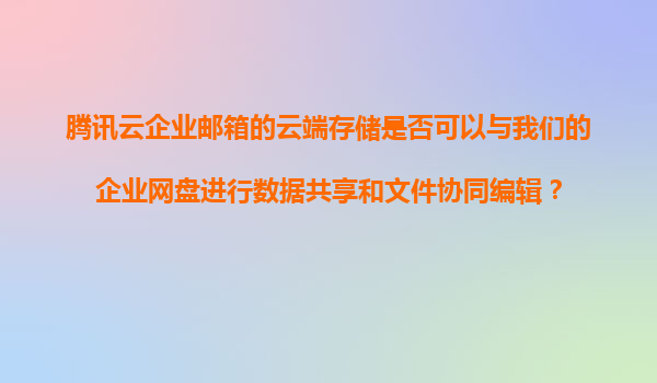 2025-11-12腾讯云企业邮箱云端存储与企业网盘的数据共享及协同编辑解决方案 一、腾讯云企业邮箱云端存储的核心能力 腾讯云企业邮箱不仅提供专业的邮件服务,其内置的云端存储功能支持: 大文件存储:单...