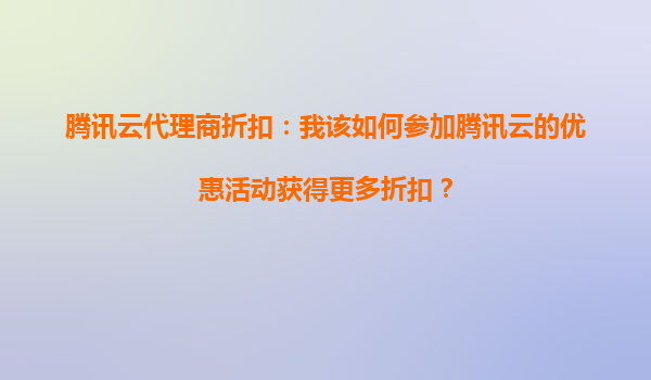 2025-09-16如何通过腾讯云代理商获取更多优惠折扣 作为国内领先的云服务提供商,腾讯云凭借其稳定的性能、丰富的产品矩阵和贴心的服务赢得了众多用户的青睐。许多用户在使用腾讯云的过程中常常想知道:如何通过代理商渠道享...