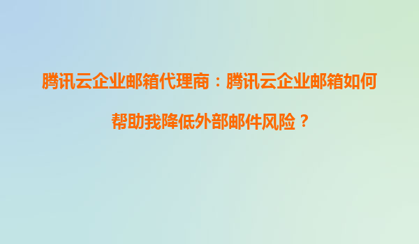 2025-09-16腾讯云企业邮箱如何帮助降低外部邮件风险 一、智能反垃圾邮件防护系统 腾讯云企业邮箱搭载了业界领先的反垃圾邮件引擎,基于腾讯安全大数据和AI技术,实现对垃圾邮件、钓鱼邮件的精准识别和拦截。系统每日...