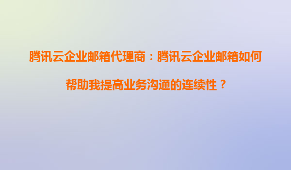 2025-09-16腾讯云企业邮箱代理商:腾讯云企业邮箱如何帮助我提高业务沟通的连续性? 引言 在数字化时代,企业的高效沟通是业务连续性的关键保障。无论是内部协作还是与客户的交流,电子邮件的稳定性和安全...