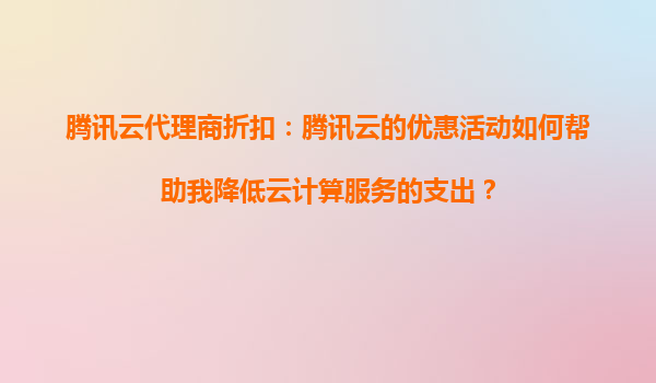 2025-09-16腾讯云代理商的折扣政策与优惠活动 作为国内领先的云服务提供商,腾讯云凭借其稳定的性能、丰富的产品线及灵活的代理商政策备受企业青睐。对于用户而言,通过腾讯云代理商渠道购买服务往往能享受更低的折扣和专...