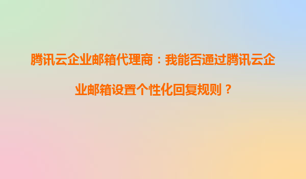 2025-09-16腾讯云企业邮箱如何设置个性化回复规则?代理商详解实用功能 前言:企业沟通智能化的重要性 在数字化办公时代,专业的企业邮箱不仅是沟通工具,更是提升企业形象的关键。作为腾讯云企业邮箱代理商,我们深切...