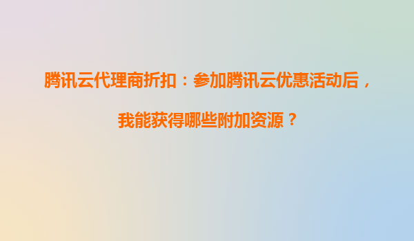 2025-09-16腾讯云代理商折扣:参加腾讯云优惠活动后,我能获得哪些附加资源? 随着云计算技术的迅猛发展,越来越多的企业和开发者选择将业务迁移到云端。腾讯云作为国内领先的云计算服务提供商,凭借其强大的技术实力和丰富...