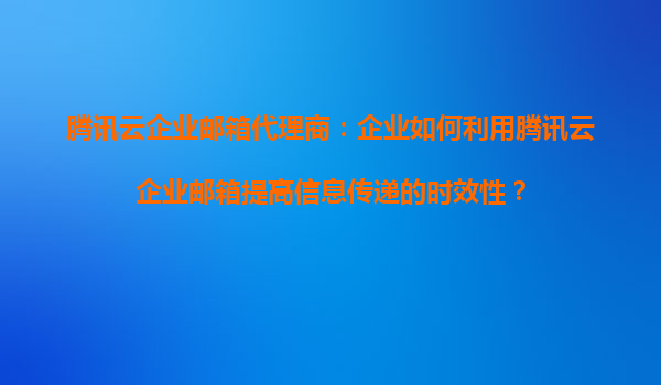 2025-09-16腾讯云企业邮箱代理商:企业如何利用腾讯云企业邮箱提高信息传递的时效性? 一、引言:信息传递时效性的重要性 在数字化时代,企业的高效运作离不开即时、安全...