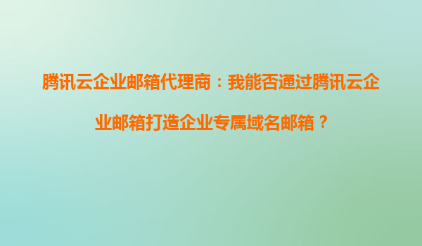 2025-09-16腾讯云企业邮箱代理商:我能否通过腾讯云企业邮箱打造企业专属域名邮箱? 在当今数字化商业环境中,企业邮箱不仅是沟通工具,更是企业专业形象的体现。拥有一个以企业专属域名为后缀的邮箱(如yourname@your...