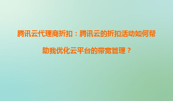 2025-09-16腾讯云代理商折扣:如何利用折扣活动优化云平台带宽管理 一、引言 在数字化快速发展的今天,企业对云计算资源的需求日益增长,尤其是带宽资源,直接影响用户体验和业务效率。腾讯云作为国内领先的云服务提供商,凭...
