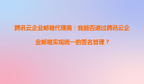 2025-09-16腾讯云企业邮箱代理商:如何通过腾讯云企业邮箱实现统一的签名管理? 一、统一签名管理的需求背景 在企业日常运营中,对外邮件往来是商务沟通的重要渠道。专业...