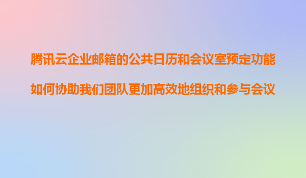 2025-11-11腾讯云企业邮箱的公共日历与会议室预定功能:赋能团队高效协作 引言 在现代企业协作中,会议的高效组织与管理直接影响团队生产力。腾讯云企业邮箱通过集成的公共日历和会议室预定功能,为企业提供了一套完整的...