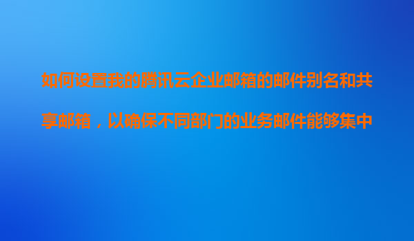 2025-11-11腾讯云企业邮箱高效管理方案 在数字化办公场景中,通过合理配置邮件别名与共享邮箱功能,可显著提升跨部门协作效率。腾讯云企业邮箱凭借其稳定架构与智能管理工具,为企业提供了专业级的邮件集中处理解决方案。 一...
