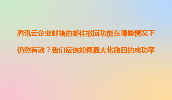 腾讯云企业邮箱邮件撤回功能的适用场景及成功率优化 邮件撤回功能的核心价值 腾讯云企业邮箱提供的邮件撤回功能是企业高效沟通的重要保障。当用户误发敏感信息、错发附件或内容需修正时,撤回功能可有效降...