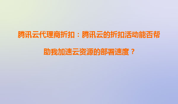 2025-09-16腾讯云代理商折扣:腾讯云的折扣活动能否帮助我加速云资源的部署速度? 1.腾讯云代理商折扣的基本概念 腾讯云代理商折扣是指通过腾讯云官方认证的代理商渠道购买云服务产品时,能够享受到的价格...