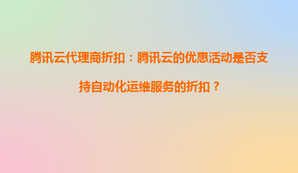 2025-09-16腾讯云代理商折扣解读:自动化运维服务如何享受更多优惠? 一、腾讯云自动化运维服务的核心价值 腾讯云自动化运维服务(CloudAutomationEngine)是企业数字化转型的重要工具,包含以下关键功能: 批量...