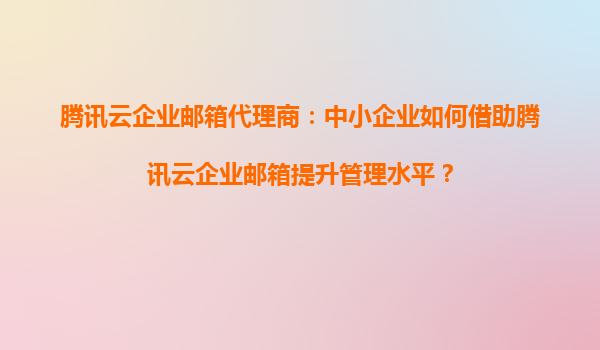2025-09-16腾讯云企业邮箱代理商:中小企业如何借助腾讯云企业邮箱提升管理水平? 引言 在数字化的今天,企业邮箱已成为中小企业提升管理水平、增强沟通效率的关键工具。...