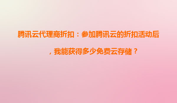 2025-09-16腾讯云代理商折扣:参加腾讯云的折扣活动后,我能获得多少免费云存储? 在当今数字化时代,云存储已成为企业及个人用户不可或缺的基础设施之一。而腾讯云作为国内领先的云服务提供商,凭借其强大的技术实力和丰...